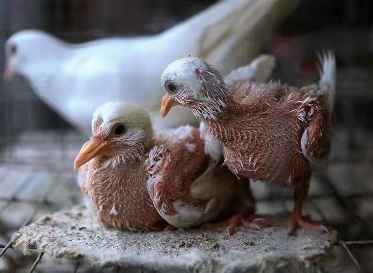 从出壳至28日龄的鸽统称雏鸽,有的地区从出生至10日龄称初雏,10~20日龄称雏鸽,雏鸽出生后应注意保温。雏鸽出壳2小时后,亲鸽便开始用喙给雏鸽吹气、泌乳,再过2小时亲鸽开始哺鸽乳,这时的雏鸽体小质弱,容易死亡,一定要加强管理。