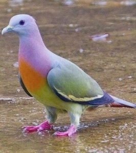 粉颈绿鸽生活在广泛的森林和人们建造的栖息地,特别是在开放的栖息地中发现。它的饮食以水果为主,特别是无花果。成对在树,在灌木或树篱的树枝下筑巢,平均产下两个卵,并共同努力孵化卵并饲养粉颈绿鸽是中等大小的鸽子,体长25~30厘米,体重约105~160克。该物种具有二态性羽毛。雄性头部灰色,颈部和上胸部呈粉红色,胸部的其余部分为橙色。背部是橄榄绿色的,翅膀是绿色的,上面有黑色和黄色的边缘,在飞行中在翅膀上形成一个黄色的条形。